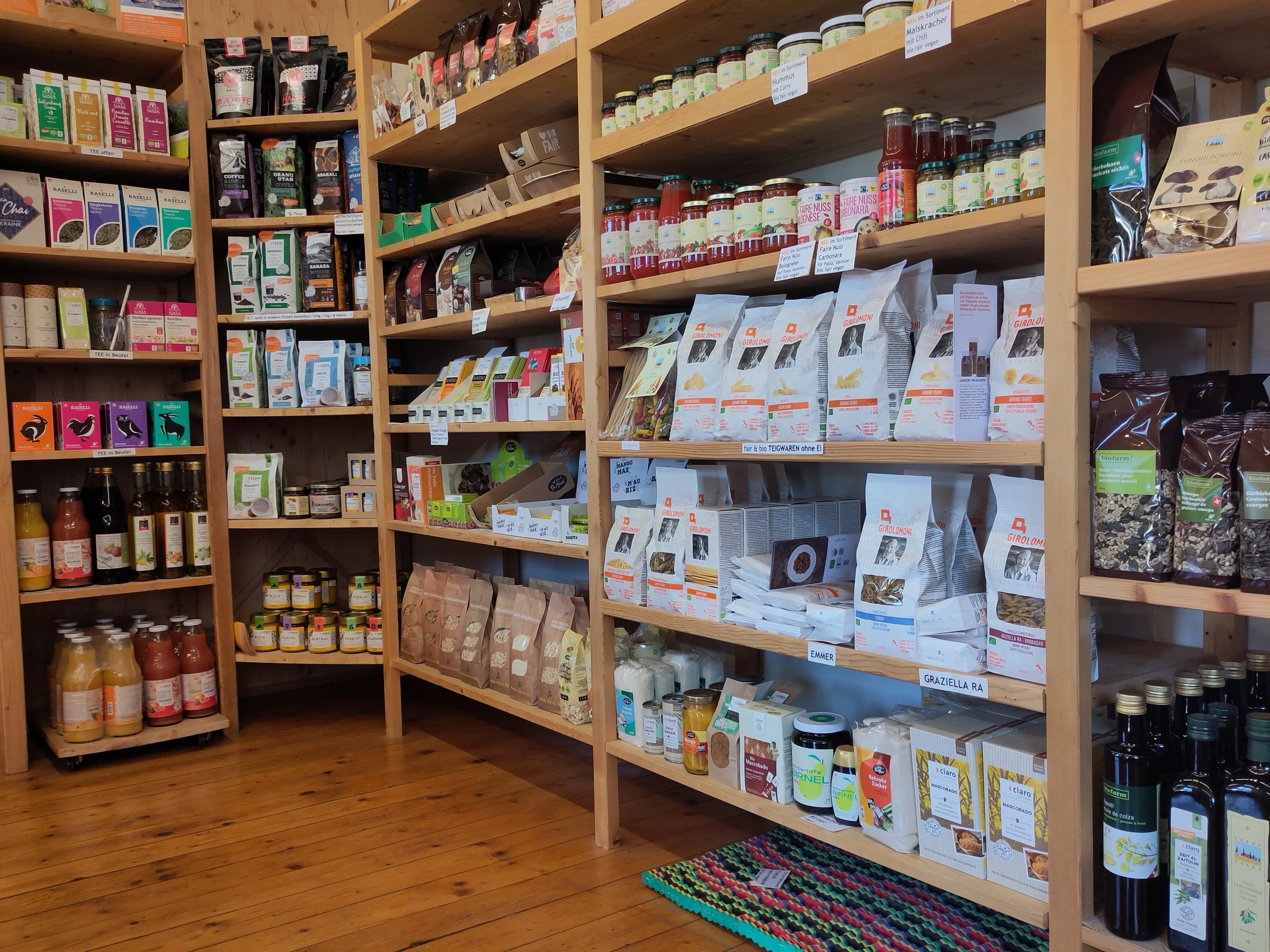 Honig, Kaffee, Tee, Kakao, Schokolade, Fruchtsäfte, Sirup, Dörrfrüchte, Nüsse, Chips, Antipasti, Teigwaren, Sugo, Reis, Quinoa, Hülsenfrüchte, Gewürze, Öle, Essig, Zucker, Müesli, Kastanienprodukte, u.v.m.